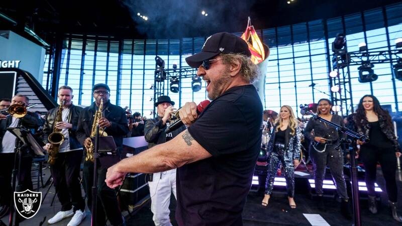 How’d it sound? No idea. Ask someone who heard it. Tough to tell from behind the stage. But it felt great, like a real rock show, with Sammy Hagar leading the party from at halftime of the Raiders-Bengals game at Allegiant Stadium.